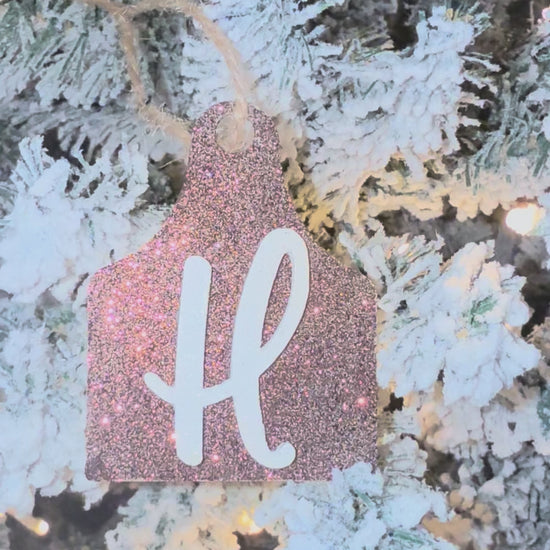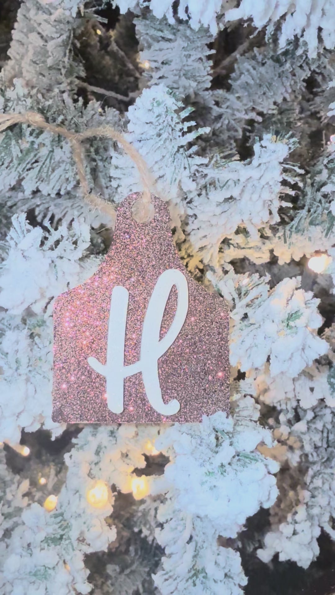 Bring a warm, rustic, western charm to your holiday decorating with this handmade cow ear tag stocking name tag. Each tag is crafted with a sparkling brown glitter base and finished with a hand-painted wooden initial, giving every piece a unique handcrafted look.